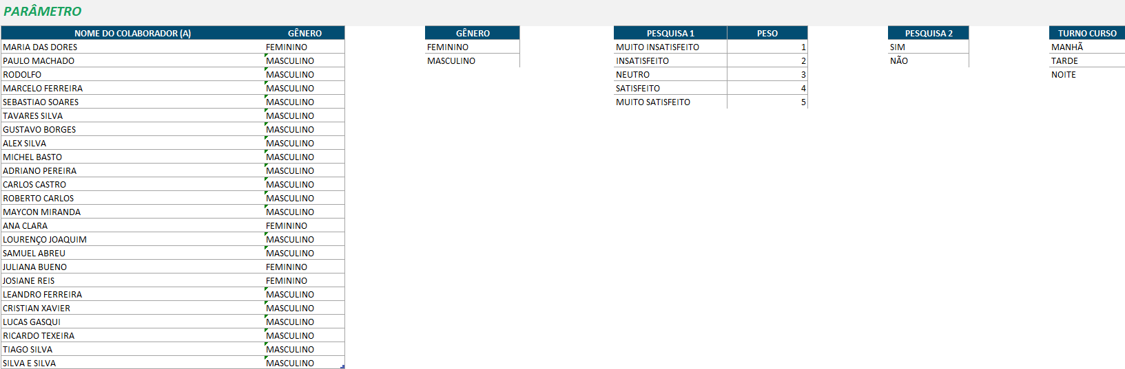 Planilhas relacionadas