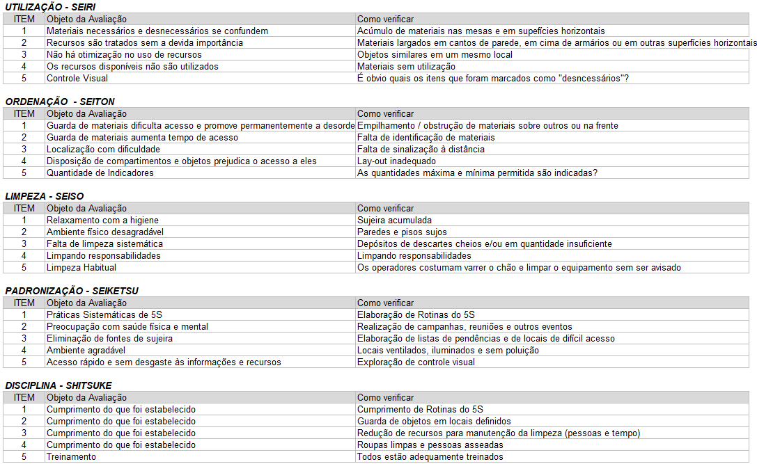 Planilha Avaliação 5S