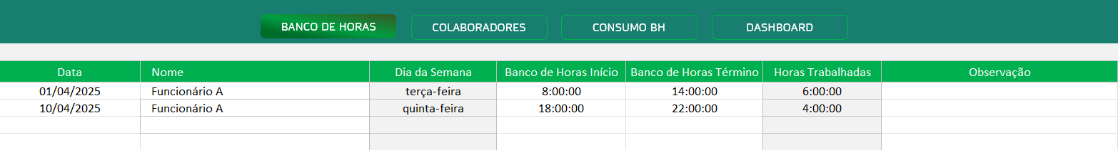 Planilha Banco de Horas