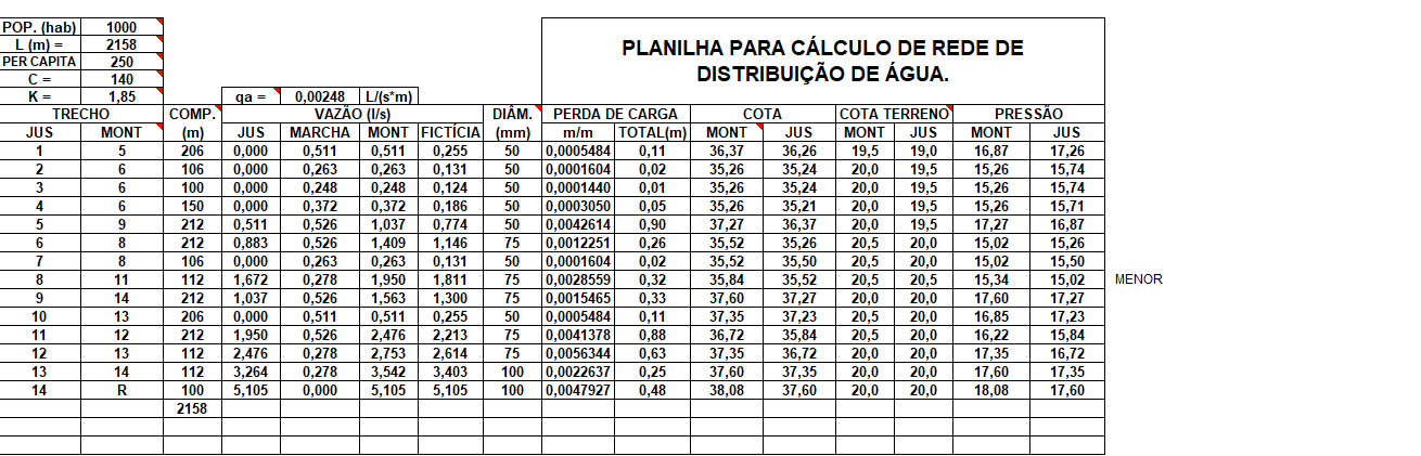 Conclusão sobre a planilha cálculo de distribuição de água