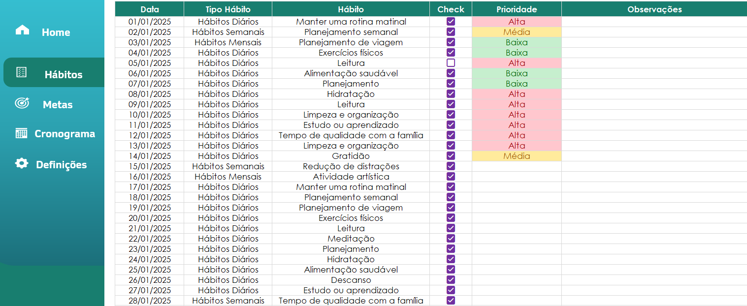 A Planilha Controle de Hábitos é ideal para qualquer pessoa que deseja: