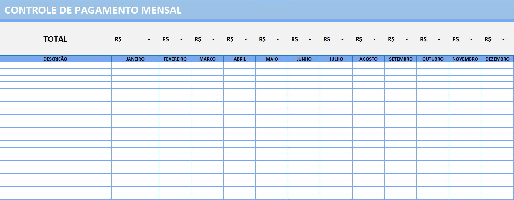 Acesso fácil e gratuito com a Planilha Controle de Pagamento Mensal