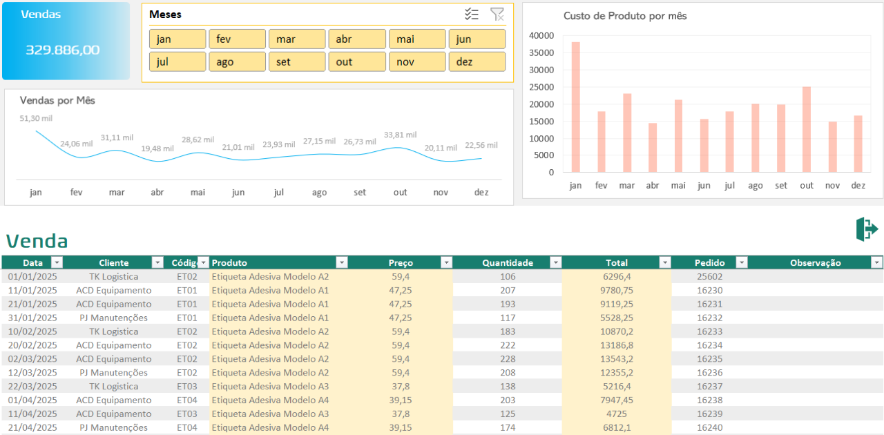 Com base nos dados inseridos, a planilha gera relatórios automáticos que ajudam a analisar os resultados da sua empresa. Você poderá visualizar: