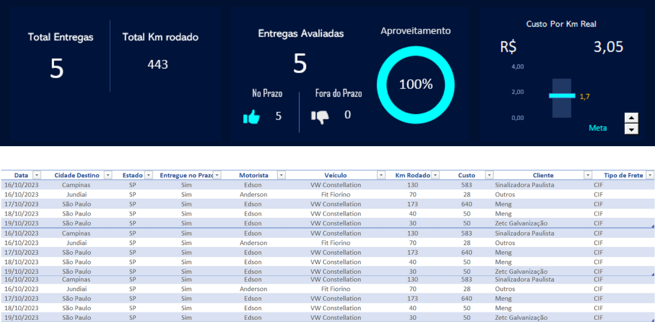 Ou seja, ao centralizar os principais indicadores em um único lugar, a Planilha Dashboard de Frete proporciona: