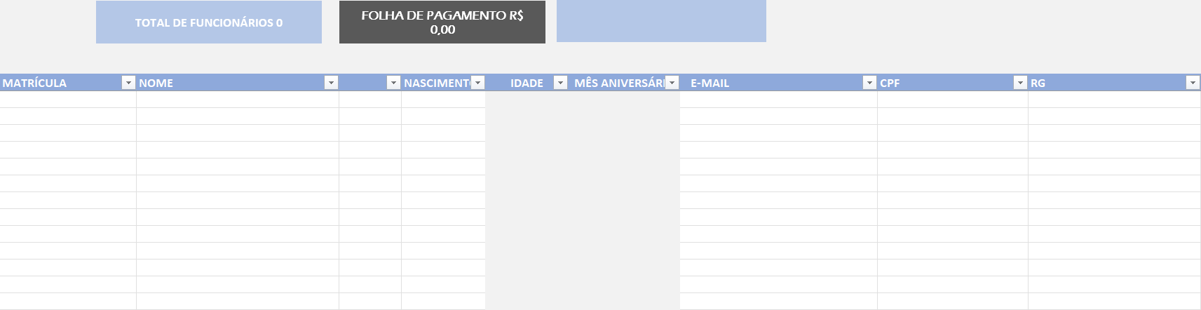 – Insira os dados dos funcionários em cada campo correspondente