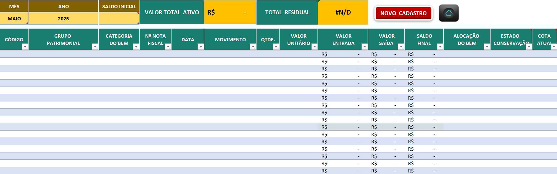 Planilha de Controle Patrimonial