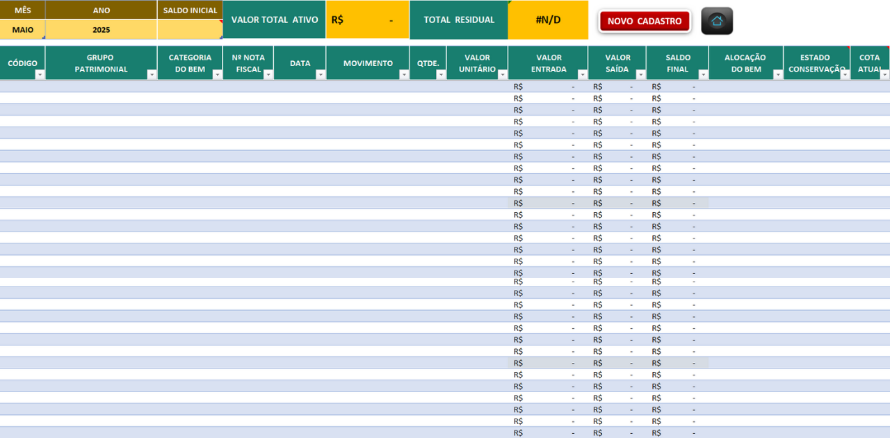 Portanto, se você busca uma forma acessível, clara e eficiente de cuidar do patrimônio da sua empresa, essa planilha é o recurso ideal. Elimine a confusão de registros manuais e transforme a gestão patrimonial em um processo inteligente e profissional.