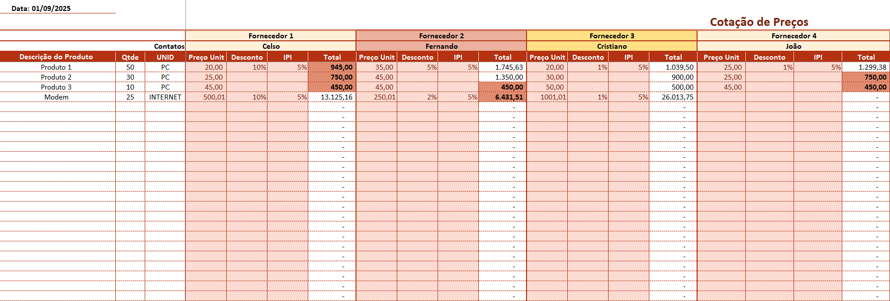 – Economia de tempo: com a planilha, é possível realizar cotações de forma ágil e organizar as informações de maneira prática, poupando tempo e esforço.