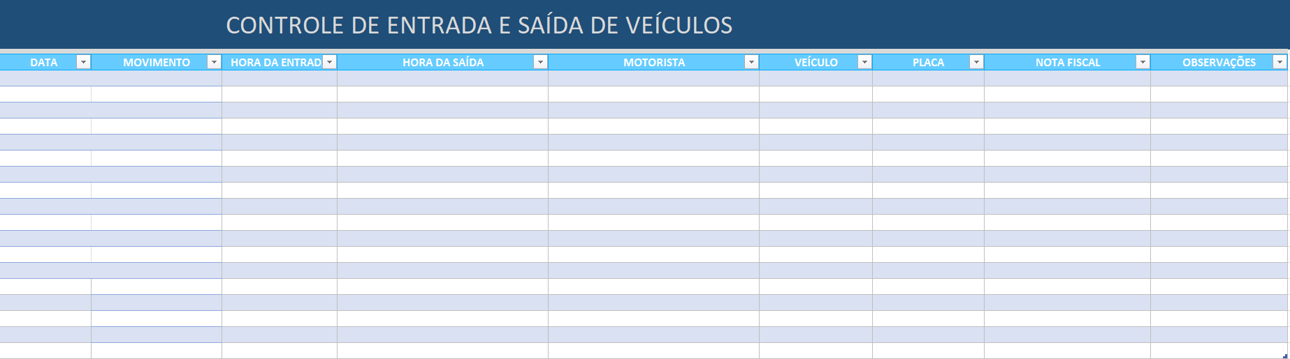 Planilha de Entrada e Saída de Veículos