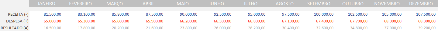 A seção de Projeções permite que você planeje mês a mês os valores esperados para receitas e despesas, com base no comportamento do seu negócio. Essas previsões alimentam os relatórios e ajudam a tomar decisões mais acertadas.