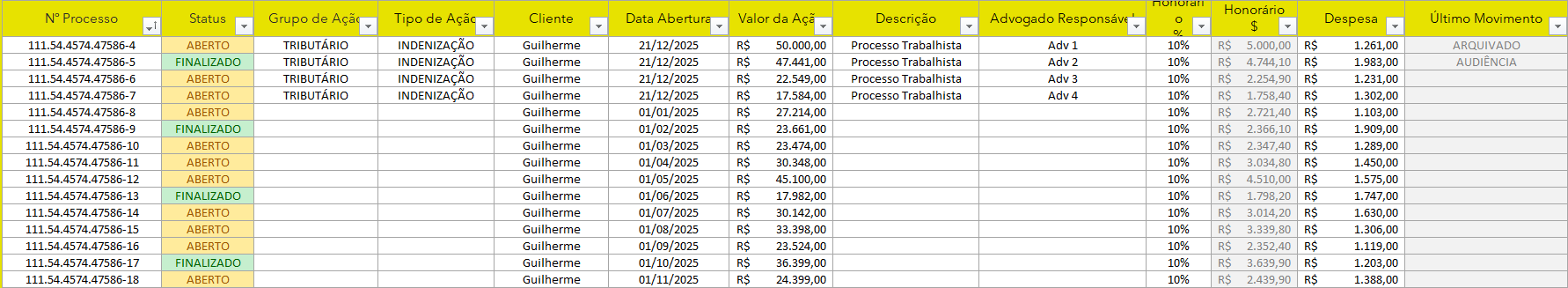 Planilha para Advogado em Excel
