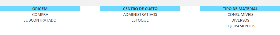Planilhas relacionadas