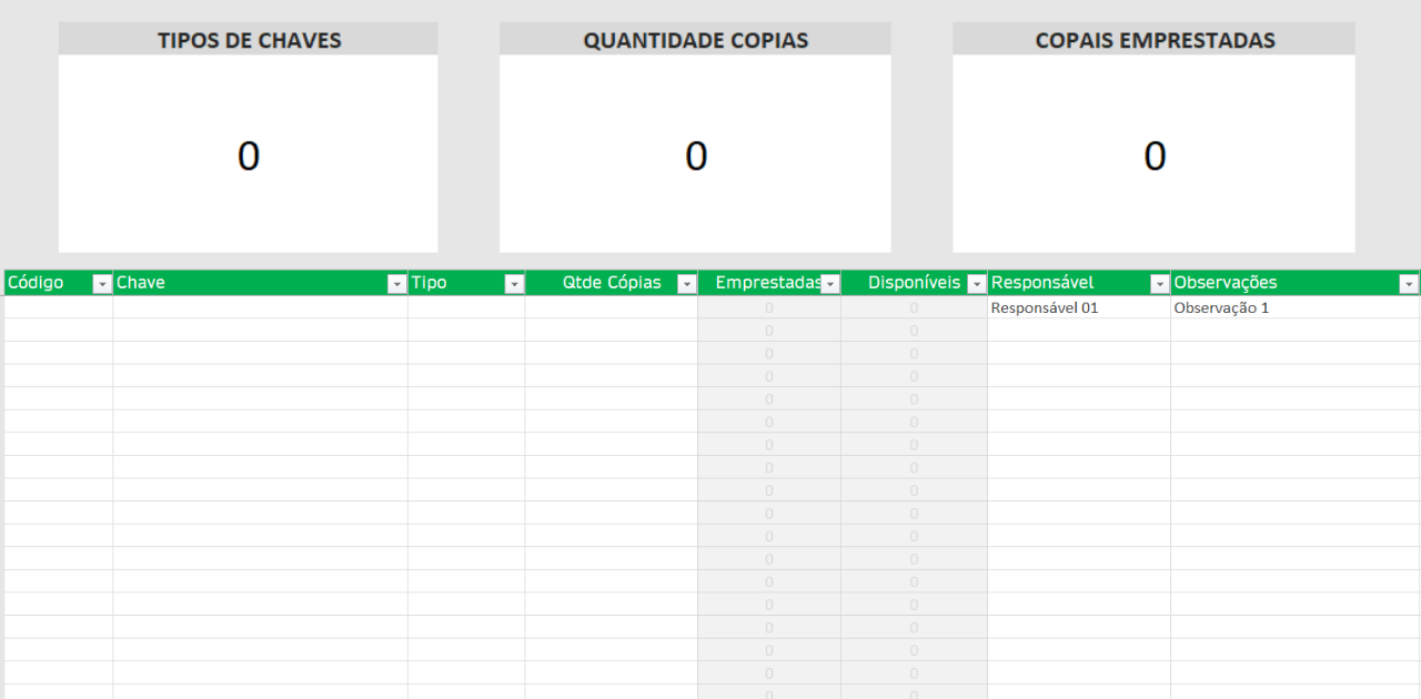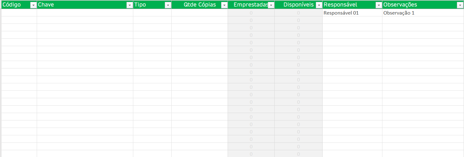Planilha para Controle de Objetos e Chaves