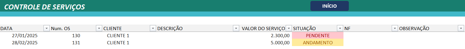 Planilha para Controle de Ordem de Serviços