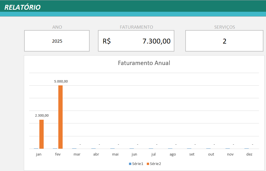 Por fim, acompanhe o desempenho da sua empresa de forma visual e estratégica. Veja o número de serviços prestados por mês, o faturamento anual e outros indicadores essenciais em uma única tela.
