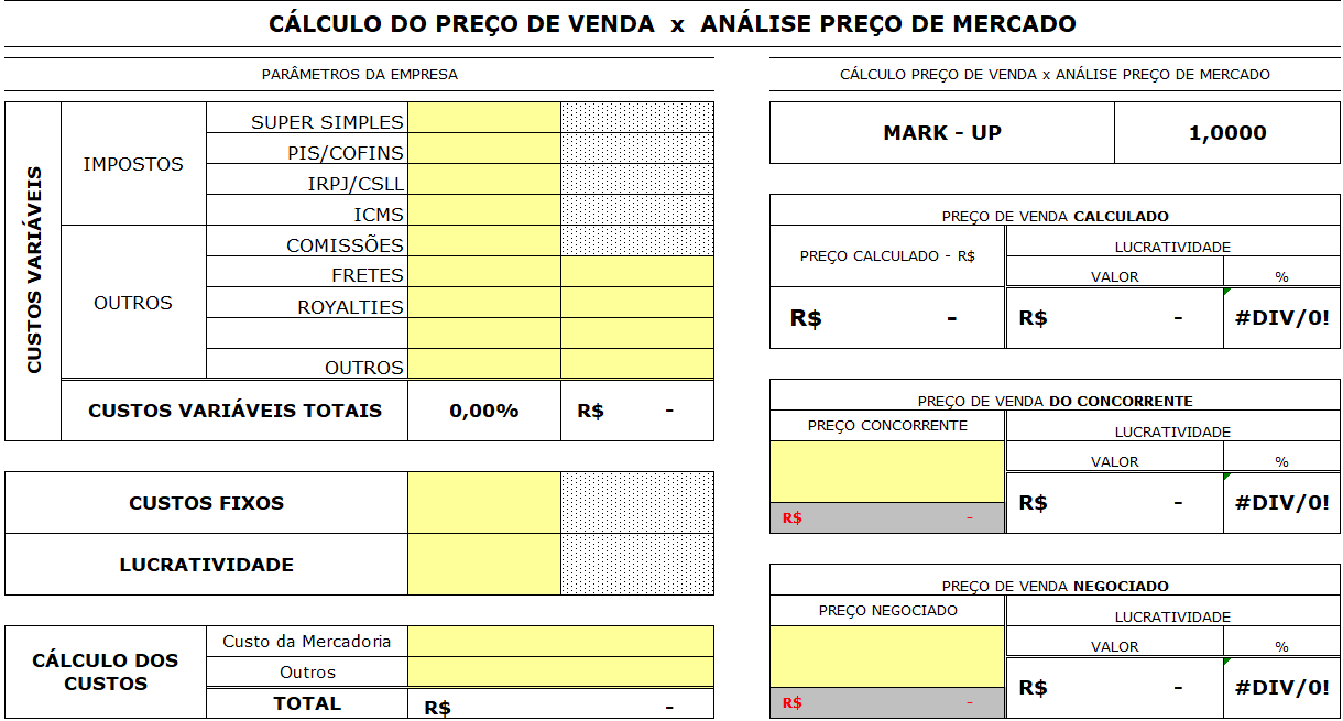 - Margem de Lucro: Defina qual percentual deseja adicionar ao custo, levando em conta a concorrência e o mercado.